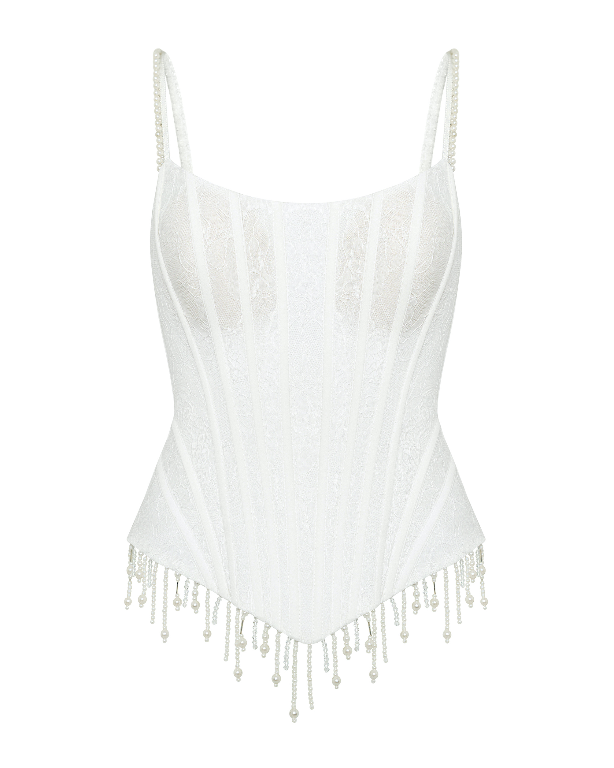 İnci püskülü dantelli korse