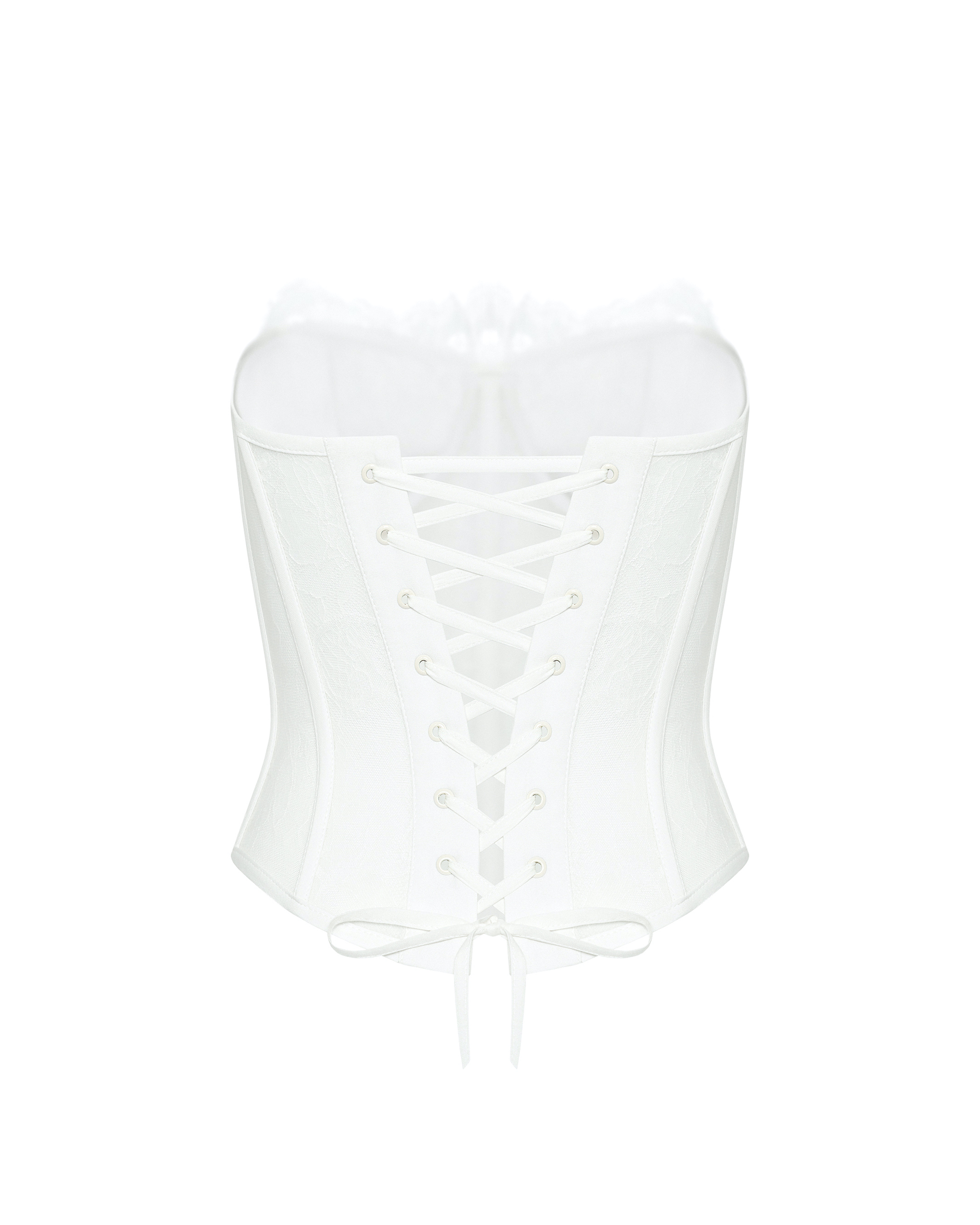 Benzersiz dantellerle zenginleştirilmiş ve feminen duruşu ile dikkatleri üzerine çeken bu inanılmaz korse herkesi kendine aşık ettirecek. Vücuda tam oturup saran bu korsenin destekli pedleri ekstra rahatlık sağlarken sırt kısmındaki ipler sayesinde giyip çıkarmasını daha rahat hale geliyor. Ekru tonlarında yapılmış bu parça, başka renk seçenekleri ile sitemizde.